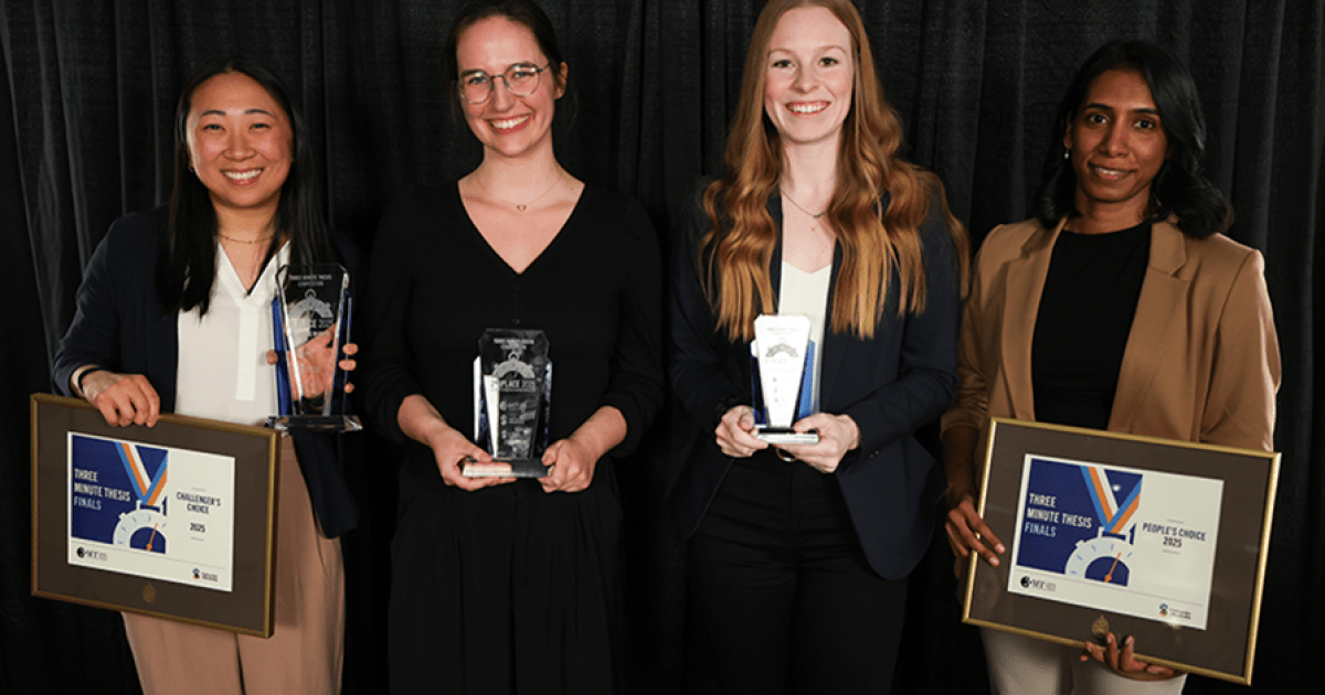 The Faculty of Graduate and Postdoctoral Studies has crowned the champions of its 2025 Three Minute Thesis (3MT®) competition, held on April 1 at the Robert B. Schultz Theatre.