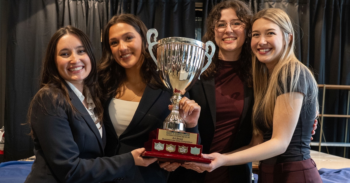 The fourth annual Art Braid Business Law Case Competition took place on Friday, March 20th, 2026, at Thompson Dorfman Sweatman LLP (TDS), with a reception following at Mottola Grocery thanks to Academy Hospitality. Congratulations to the winners of the 2026 Art Braid Business Law Case Competition: Katie Rogers (1L), Nia Sharma (1L), Kiera Butterfield (1L), and Sarah Janzen (1L) and to the finalists: Paul Chorney (3L) and Lise Conner (1L).
