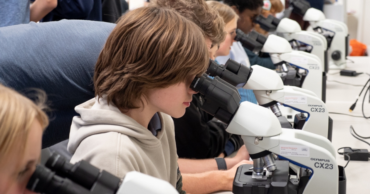 Students explored microbiology during a microscopy session with the department of medical microbiology and infectious diseases at the Max Rady College of Medicine. They looked through microscopes and examined bacteria from samples taken from different surfaces, such as a doorknob.