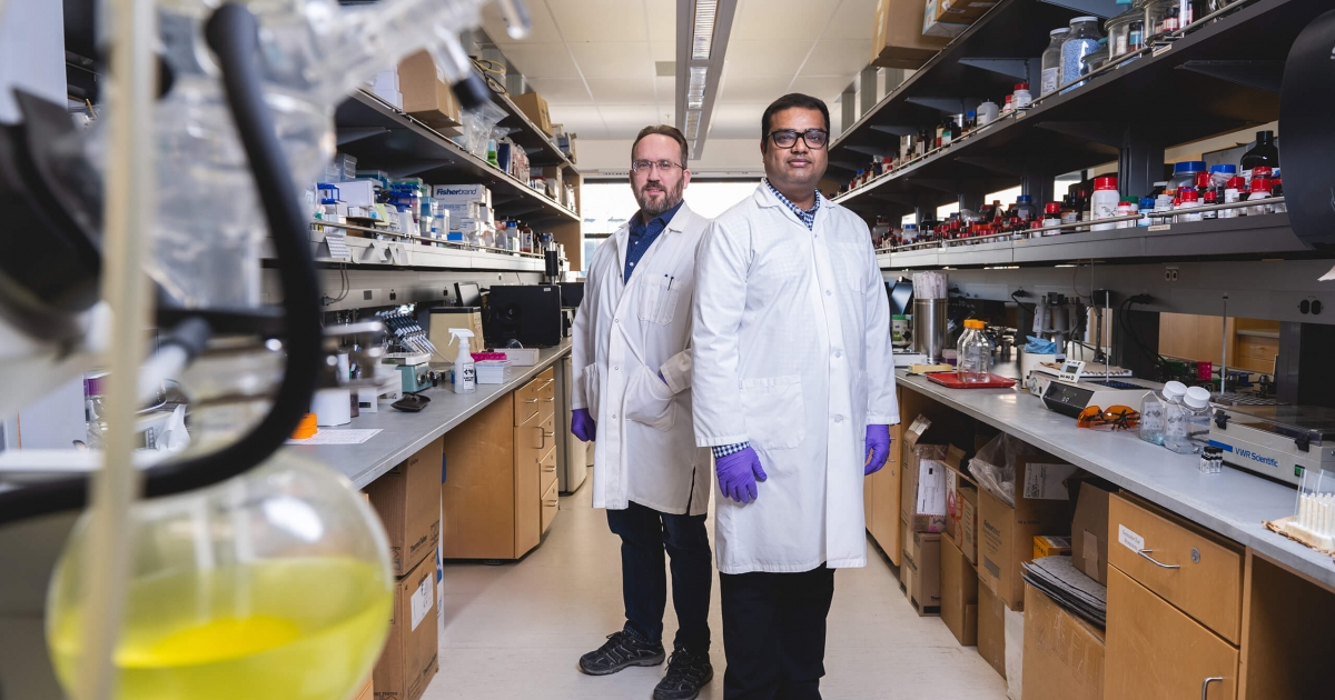 In an old kitchen fridge in a third-floor lab, stashed away in what would normally be a produce drawer, is a vial of powder that resembles salty flour. UM graduate student Nitesh Sanghai confidently, yet gingerly, holds it up and twirls it around. The drug, which he co-named Borsantrazole, is not a cure, but it is overdue optimism for a longer, better life for people living with amyotrophic lateral sclerosis, ALS.