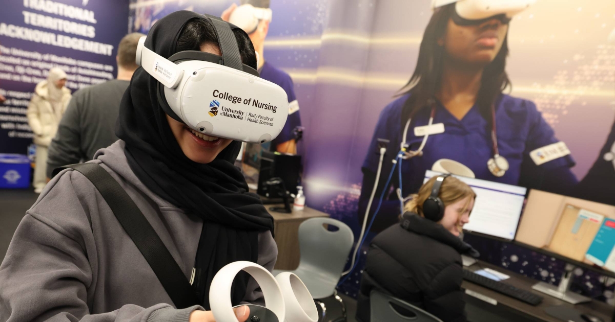 Students from Alonsa School attended the College of Nursing virtual-reality (VR) technology lab. “VR creates an engaging personal learning space. We would love to have tools like that back home,” said student Tyson Flett.