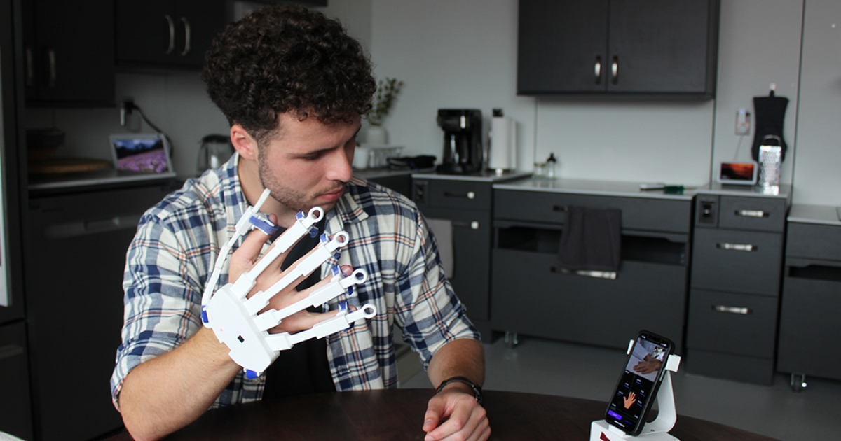 The light plastic glove, outfitted with multiple sensors, is attached to a patient’s hand and works via Bluetooth and a smartphone app to connect in real time with a therapist virtually in any location. On their mobile device, the patient can see their therapist as well as a computerized image of their hand and the movements they are doing. On the other end, the therapist sees more detailed hand movements and can download a report that provides detailed measurements such as the range of motion of each finger and the wrist.